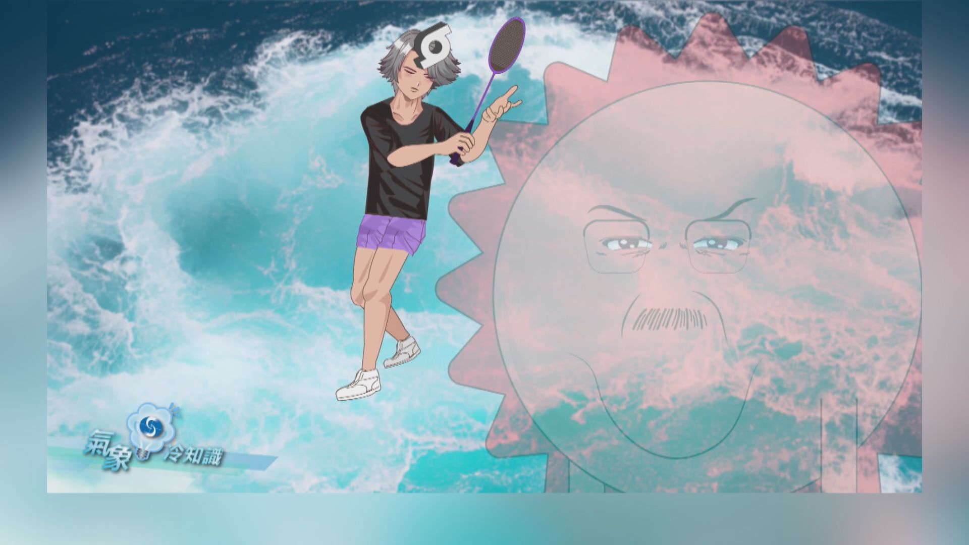 【Now新聞台】今集《氣象冷知識》以熱血動畫講解秋季的熱帶氣旋。「度天隊長」和「雨點BB」化身羽毛球小將,在雙打比賽與強敵「颱風」和「季候風」對壘,親身感受對手共同效應的威力,球路變化就如秋季熱帶氣旋的路徑般難以捉摸。