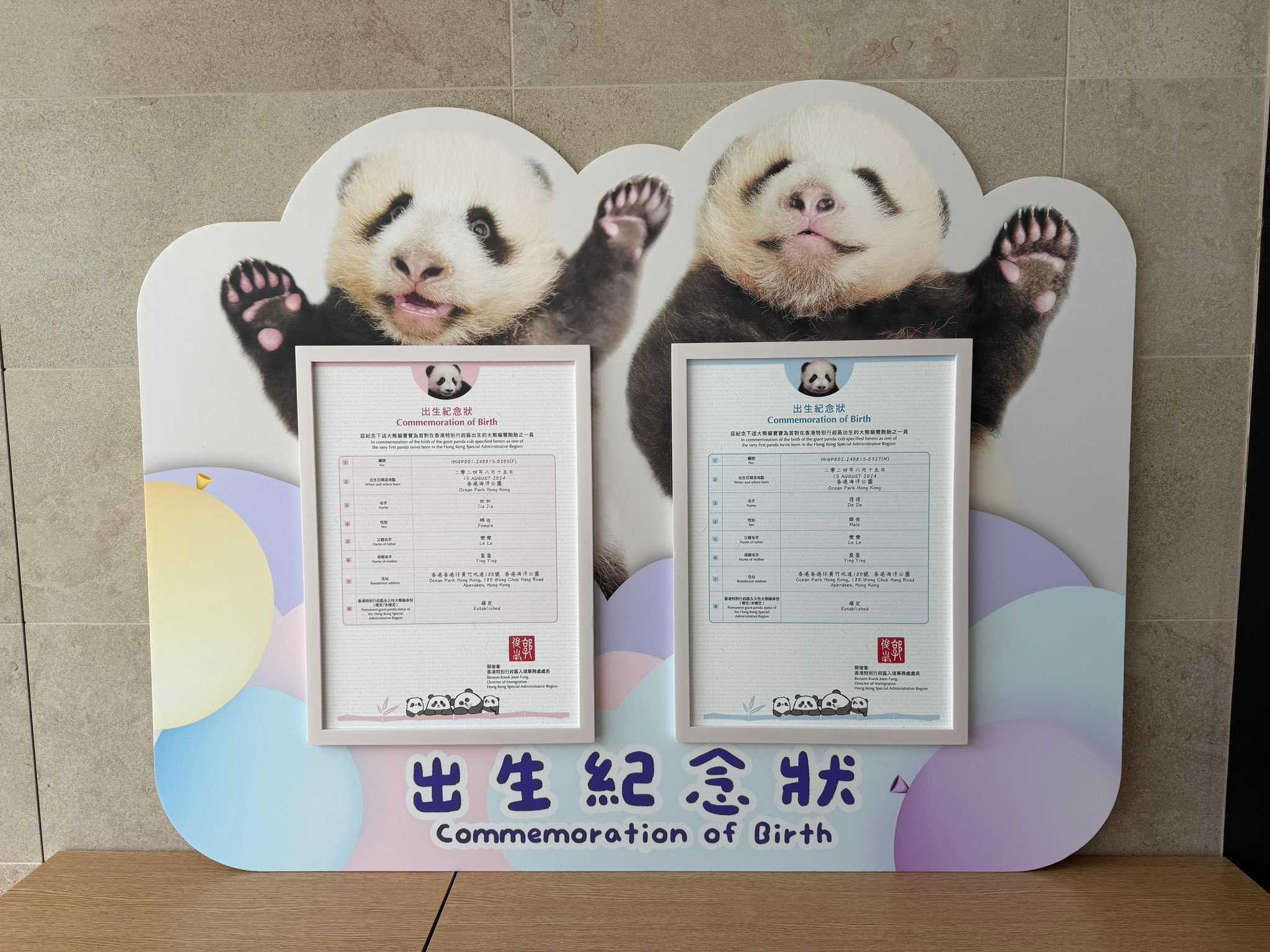 【Now.com】港產大熊貓龍鳳胎名字終於揭曉!海洋公園公布家姐叫「加加」,細佬叫「得得」。在逾35700個建議中選出,寓意家國騰飛、人民幸福,及國寶大熊貓具備中國人崇尚的美德。除了獲勝的名字外,比賽也選出了8組優異作品,即睇獲得優異獎的名字建議啦!