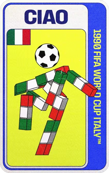 以線條勾勒的火柴人形象,頭部是一顆足球,身體由意大利國旗的紅、白、綠三色方塊組成。「Ciao」在意大利語中意為「你好」。前衛的風格在當年引起極大討論,至今仍被認為是最具藝術感的設計。