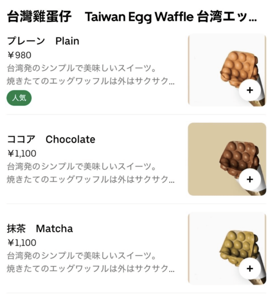 網民翻查店家的社交媒體帳號和外賣平台帳號,發現店家的社交平台也有用日文寫上「在台灣誕生的人氣甜品雞蛋仔」、「台灣的經典甜品雞蛋仔」等字樣;外賣平台更中文、英文、日文三種語言並茂寫上「台灣雞蛋仔 Taiwan Egg Waffle 台湾エッグワッフル」,餐點形容更加寫上「台湾発」,即代表來自台灣。