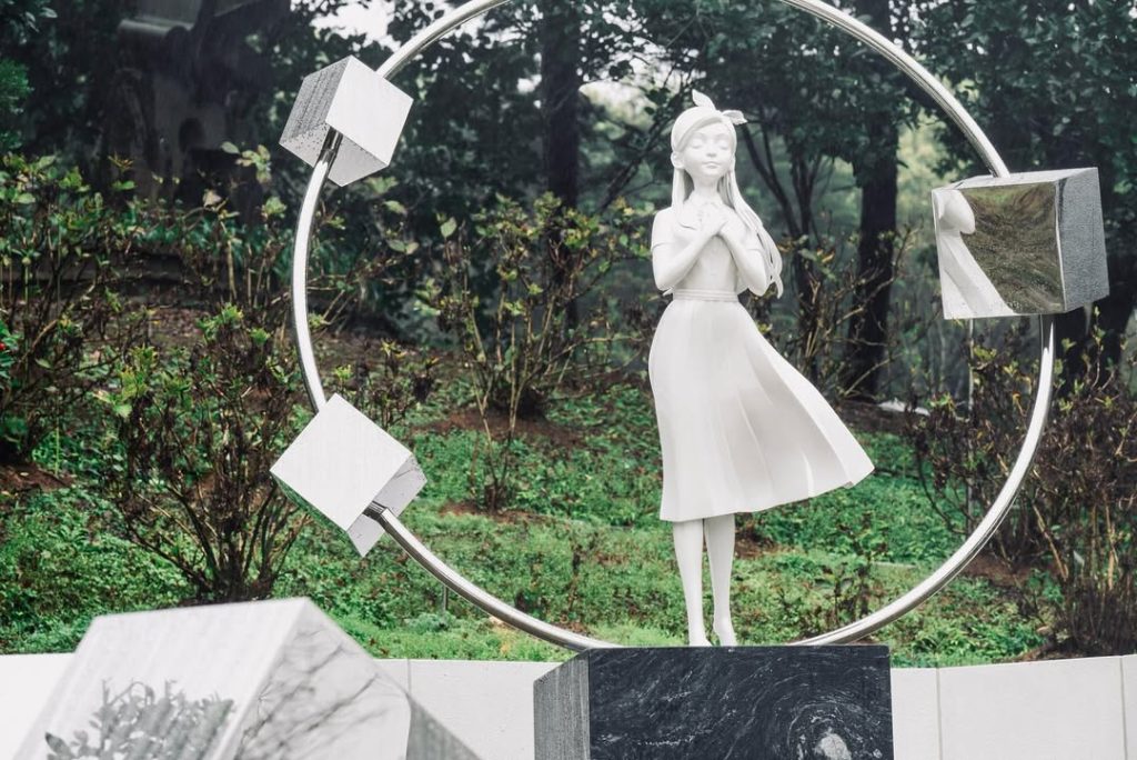 紀念雕像命名為 《熙媛的永恆軌道》 ,由具俊曄與藝術總監李承道耗時10個月設計完成。雕像本體為一名仰望遠方的純白少女,環繞雕像周圍的9個立方體,代表守護她的行星。具俊曄透露設計理念,指出韓文數字 「9」 的發音與具俊曄姓氏 「具」 相同,同時也是大S生前的幸運數字,故設9個立方體圍繞故人。此外,雕像面朝南方208度,方向正對台北,而 「208」 則寓意夫妻二人的結婚紀念日-2月8日。具俊曄為雕像親撰碑文:「在這條軌道上,時間不再終結,愛持續運轉」 ,寄託對大S永恆的思念。