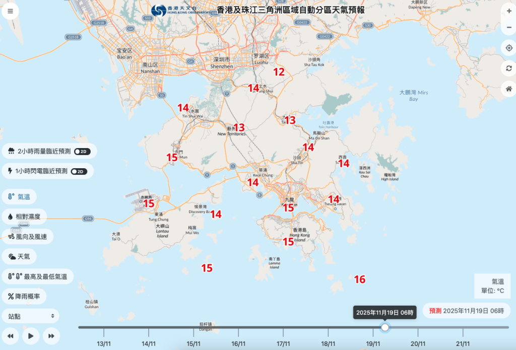 Now.com】11月天氣反覆,時晴時涼。天文台預測,本港下周天氣將迎來明顯轉變,一股強烈東北季候風會於下周初抵達華南沿岸,氣溫將顯著下降。下周三(11月19日)市區最低氣溫將跌至15度,新界多區低見14度,即睇天氣概況做好準備。