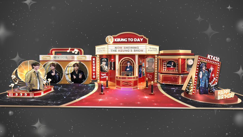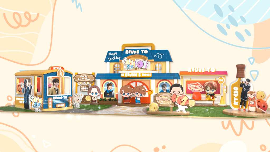 銅鑼灣皇室堡則以「The Keung’s Theatre」為題,復刻美式復古百老匯舞台,展出多張姜濤的舞台照片。場內設置 5 大打卡熱點,如巨大化復古卡式帶機及「愛姜請留言」電話亭。場內更有人氣品牌推出的期間限定主題甜品,並舉辦慈善工作坊,讓姜糖親手鈎織「小濤桃」等應援小物。此外,「小姜姜」與「小濤濤」將以全新造型驚喜現身兩大商場(The ONE&皇室堡),讓粉絲近距離合照。