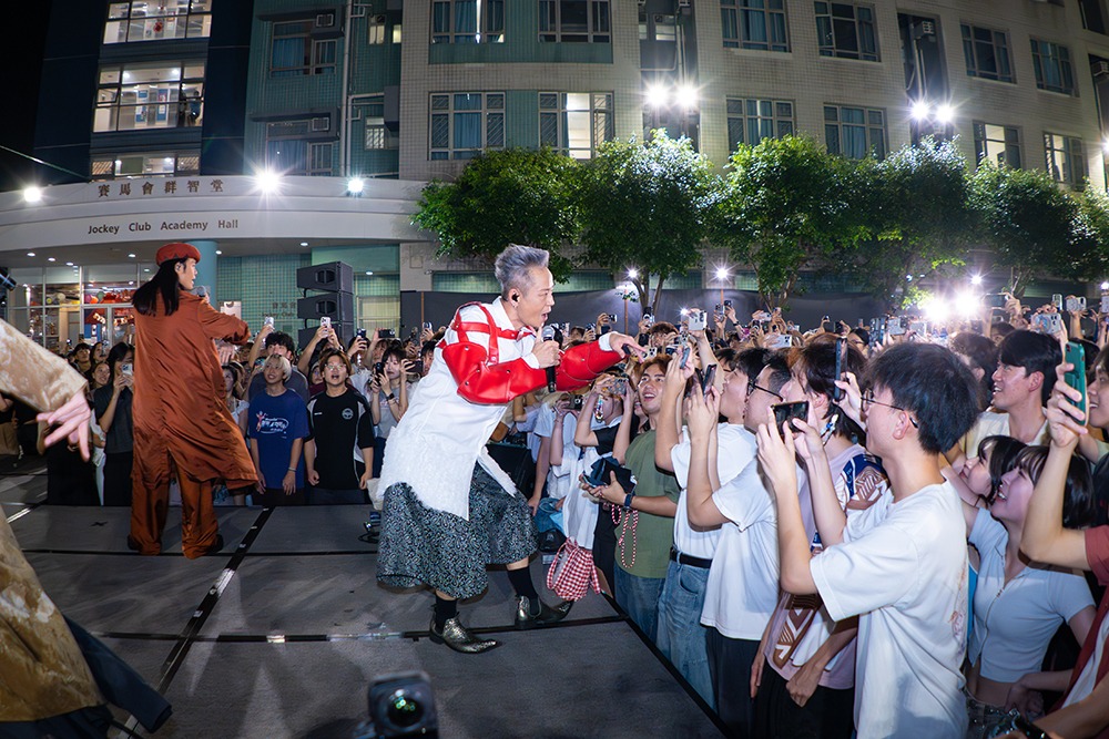 不少同學在宿舍樓房窗邊捧場,揮動手燈又做心心手勢打氣,蔡一智笑說:「佢哋好似喺啟德運動場坐包廂,VIP嚟㗎!」蘇志威說:「佢哋喺VIP區有冷氣好正,但落嚟企台邊睇嘅同學好近距離感受我哋嘅表演,可以握手,互相感受到大家嘅熱情。」表演最後全場大合照,同學仔大叫encore,草蜢預告明年4月紅館演唱會,到時再見。蔡一智希望畢業禮再請他們來慶祝,又說:「下次直情搞個草蜢Scool tour啦!原來咁好玩,可以比佢哋感染到嗰種開心氣氛!」