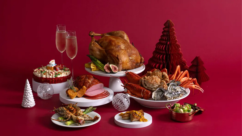 餐廳同時有傳統烤火雞、M6-M7 和牛肉眼、烤蜜汁火腿、威靈頓牛扒、龍蝦等多款海鮮冷盤等輪流供應。晚市限定更會為每位客人奉上味噌龍蝦尾一份。