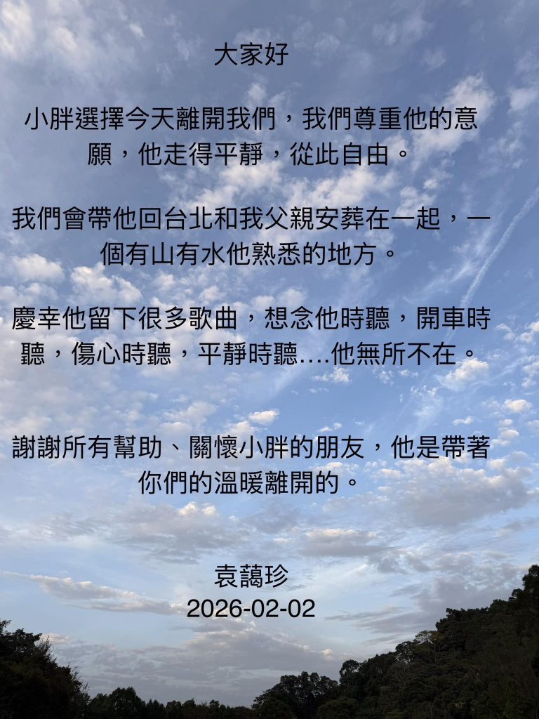 音樂人袁惟仁的胞姊袁藹珍透過圈中好友發文,指袁惟仁已於昨日(2日)離世,家屬將會將他的遺體帶回台北與父親一同安葬。而袁惟仁的女兒昨日亦有於Instagram發文,感謝各界的關心,並表示家屬們會低調處理後事的安排。