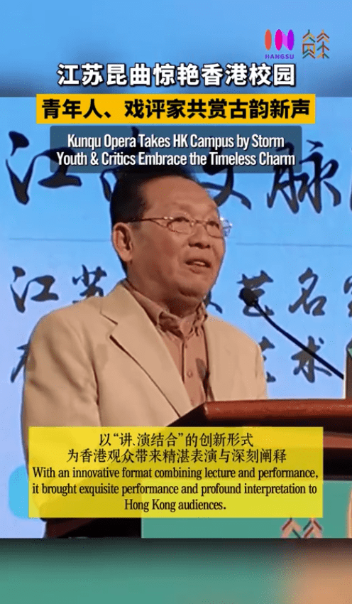 演出前舉行的「崑曲藝術講演」,由定居香港 30 多載的吳歡主講。他細述父親吳祖光的作品對當代中國及香港電影的深遠影響。吳歡在演講中列舉多位祖籍江蘇的香港文藝名家——包括音樂界的顧嘉煇、陳蝶衣,以及傳媒界的王韜、費彝民、卜少夫等,指出江蘇與香港的文化脈絡早已血脈相連、交融不絕,為兩地文化交流寫下深刻註腳。