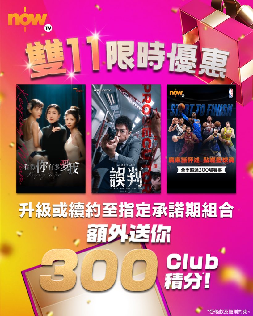 由即日起至11月17日,現有客戶升級或續約至指定承諾期組合,可獲額外300 Club積分。