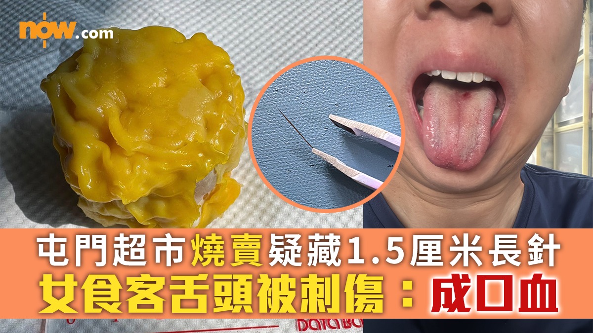 【Now.com】市面推出了不少包裝點心,方便市民隨時享用。有市民近日在屯門市廣場的連鎖超市購買包裝燒賣,進食時發現一支長約1.5厘米的長針,更被刺傷舌頭,遂吐出燒賣並連帶血水,事主事後求醫並注射破傷風針。食環署已介入調查,而涉事超市則指已將相關產品全面下架。