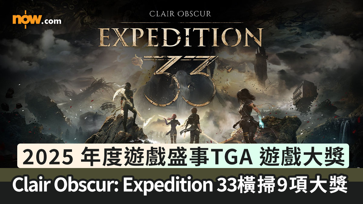 【Now.com】一年一度的遊戲界盛事The Game Awards (TGA) 遊戲大獎頒獎典禮完滿結束,《光與影:33號遠征隊》(Clair Obscur: Expedition 33) 成為今年的大贏家,橫掃「最佳遊戲」、「最佳敘事」、「最佳美術指導」、「最佳配樂」等共9項大獎。