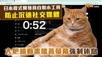 防止社交媒體上癮|日本程式開發員自製小工具防止沉迷社交媒體 每小時大肥貓動畫擋著螢幕強制休息5分鐘