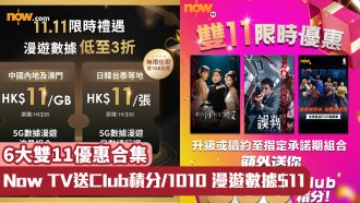 雙11優惠丨6大網購優惠合集 Now TV送Club積分/1010 漫遊數據$11/網上行$11搶家電/百佳88折