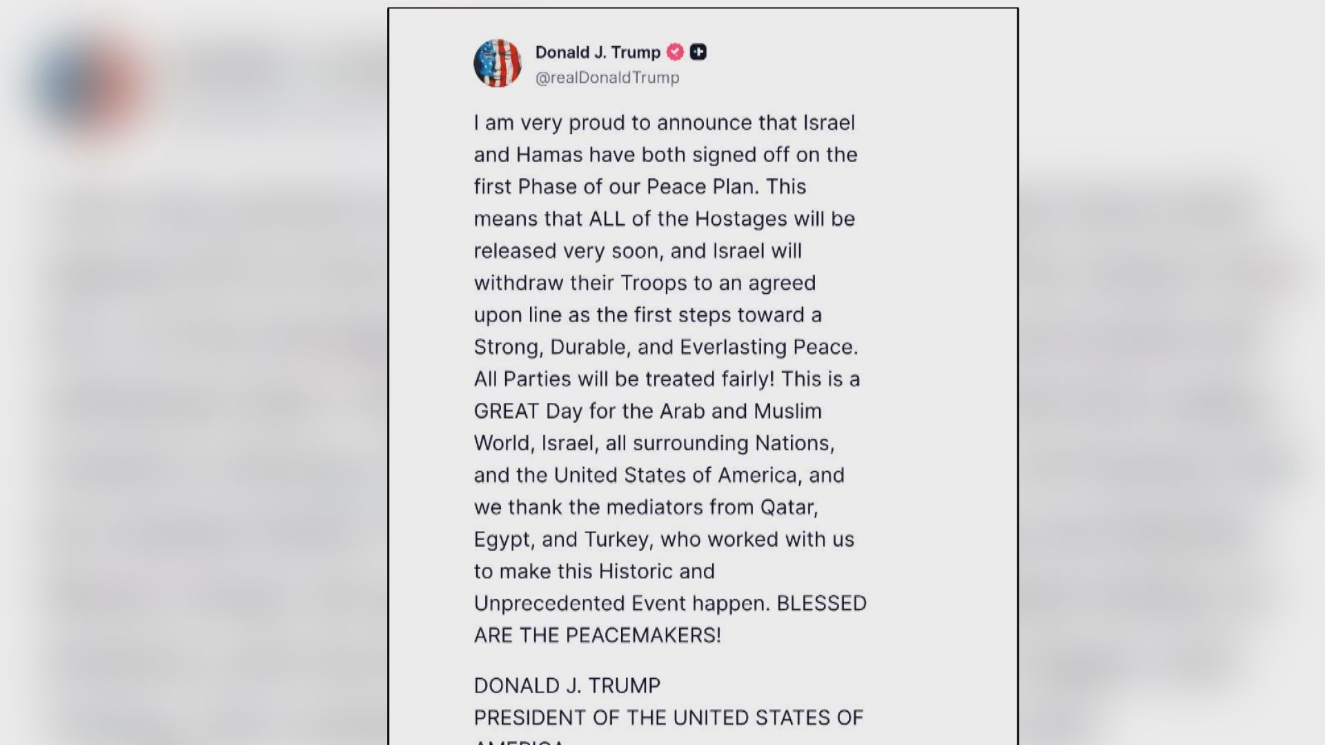 【Now新聞台】美國總統特朗普宣布,以色列和哈馬斯已簽署首階段和平協議,他可能會在周末前往中東。