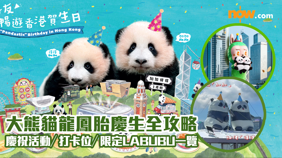 【Now.com】港產大熊貓龍鳳胎加加、得得今日(15日)迎來一歲生日,海洋公園為一對姊弟舉辦生日派對。為了慶祝加加和得得一歲生日,海洋公園亦聯同政府及旅發局推出一系列慶祝活動,包括大熊貓主題的港鐵列車、天星小輪等,更推出「大熊貓生日特別版LABUBU」!Now.com為各位「契爸契媽」整合必去慶祝活動,等大家唔會錯過!